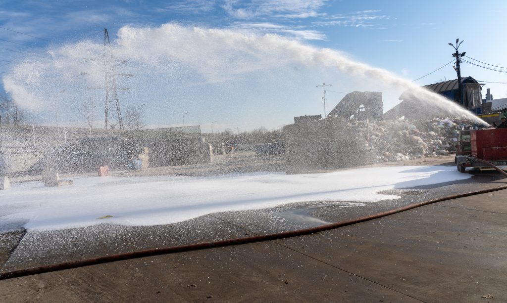 ➡️ Podczas czwartkowego (20.11) szkolenia przeprowadziliśmy pełny scenariusz sytuacji awaryjnej. Ćwiczyliśmy szybkie reagowanie w warunkach symulowanego zagrożenia – ogłoszenie alarmu, przygotowanie sprzętu, a następnie gaszenie ognia wodą oraz pianą.