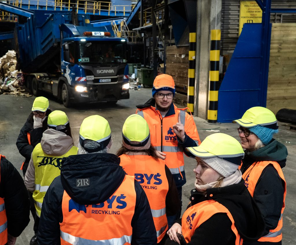 🎓 Zobaczyli jak wygląda droga odpadów od momentu przyjęcia do sortowni przez pełen proces segregacji, segregowania surowców wtórnych, działania maszyn i separatorów, aż po etap przygotowania surowców do recyklingu lub odzysku.