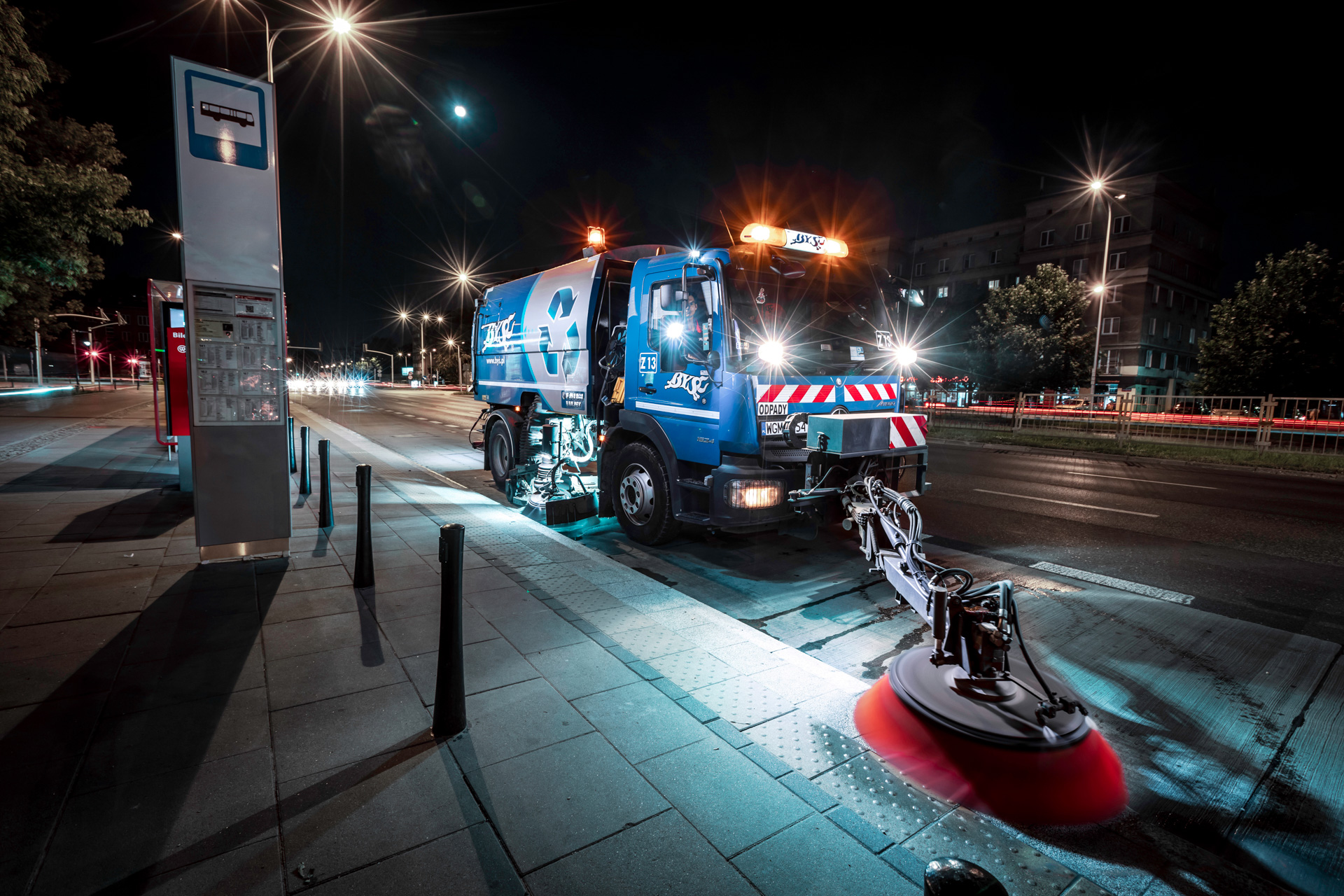 Świadcząc usługi mechanicznego zamiatania posiadamy kilka rodzajów zamiatarek o różnej wielkości i przeznaczeniu. Są wśród nich zamiatarki o małych gabarytach, duże zamiatarki oraz zamiatarki typu Brodway. Wszystkie nasze pojazdy spełniają normę pylenia PM10. Pojazdy wyposażone są w system GPS, który na bieżąco monitoruje trasę pojazdu oraz system kamer utrwalających obraz z pracy pojazdu.